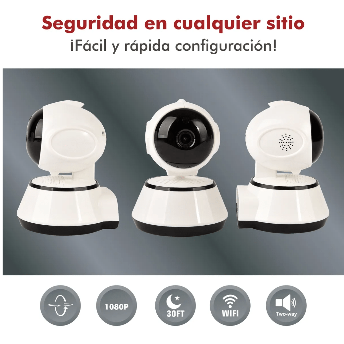 Aunque no es motorizada, su visión nocturna garantiza que tu espacio esté protegido incluso en condiciones de poca luz. La cámara no es resistente al agua, por lo que es perfecta para ambientes interiores. La funcionalidad de audio bidireccional no está disponible, pero su diseño compacto y elegante se adapta a cualquier decoración.