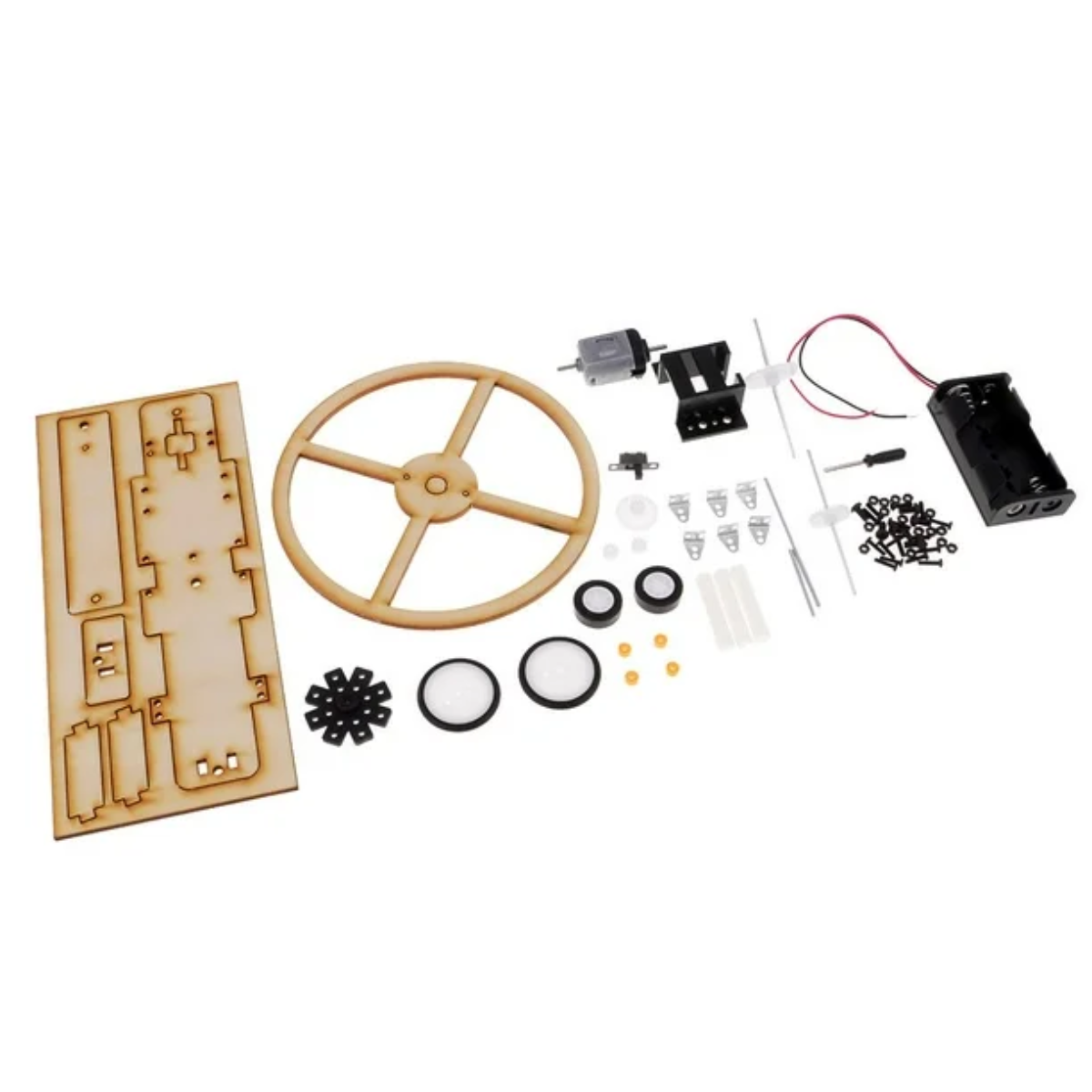 Un modelo educativo que permite armar paso a paso un helicóptero en miniatura utilizando piezas de madera cortadas con precisión.